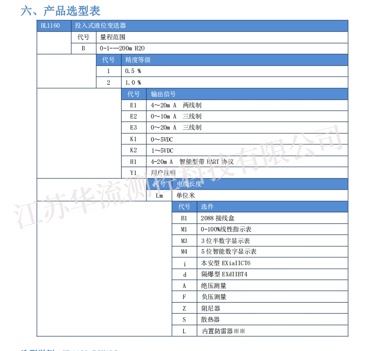 HL1160 投入式液位變送器(液體靜壓式,用于普通液體)采用高性能的擴散硅壓阻式壓力傳感器作為測量元件,經過高可靠性的放大處理電路及精密溫度補償,將被測介質的表壓或絕壓轉換為標準的電壓或電流信號。本產品體積小巧,使用安裝方便,直接投入水中即可測量出變送器末端到液面的液位高度。