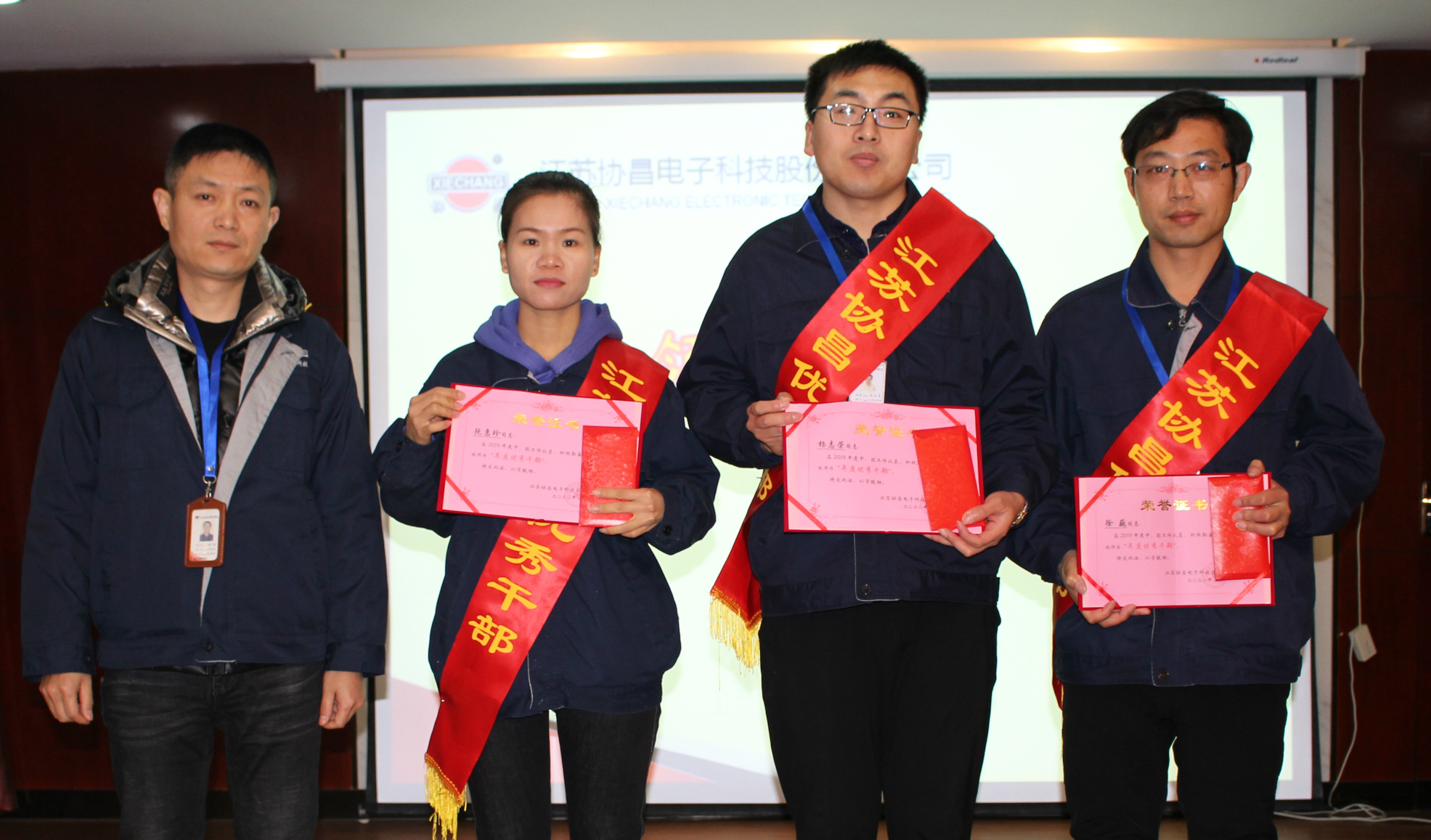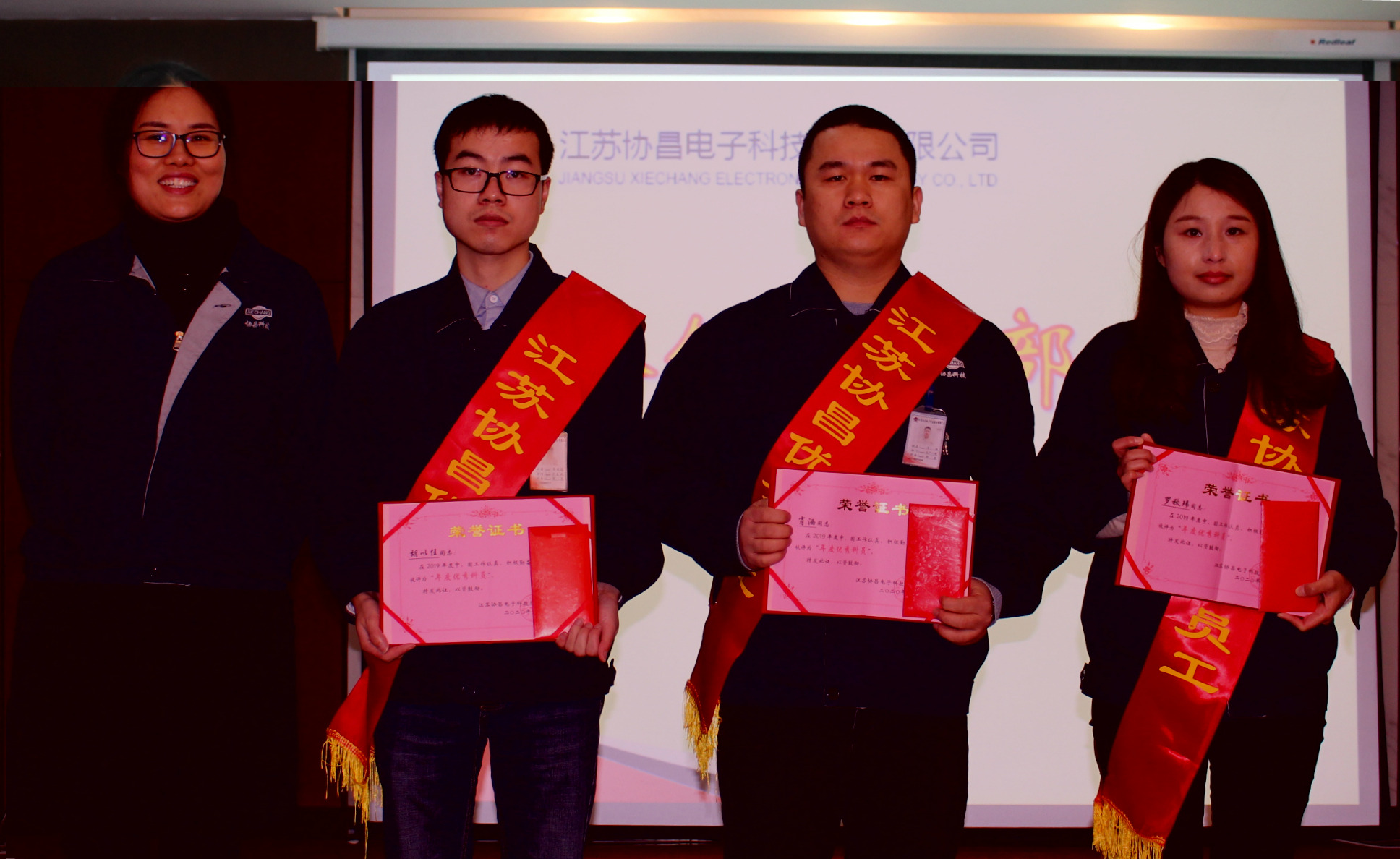 會議開始,隆重表彰了2019年度優秀干部和優秀員工。營運中心總監蔡云波在宣讀表彰決定時,代表公司要求受表彰的同志要戒驕戒躁、繼續努力、再創佳績,希望全體員工向受表彰的先進學習,愛崗敬業、勇挑重擔,為公司的發展做出更大更新的貢獻。公司營銷中心總監顧韌、財務兼制造中心總監王紅梅、研發中心總監張亮分別為“優秀干部”、“優秀科員”、“優秀員工”頒獎。