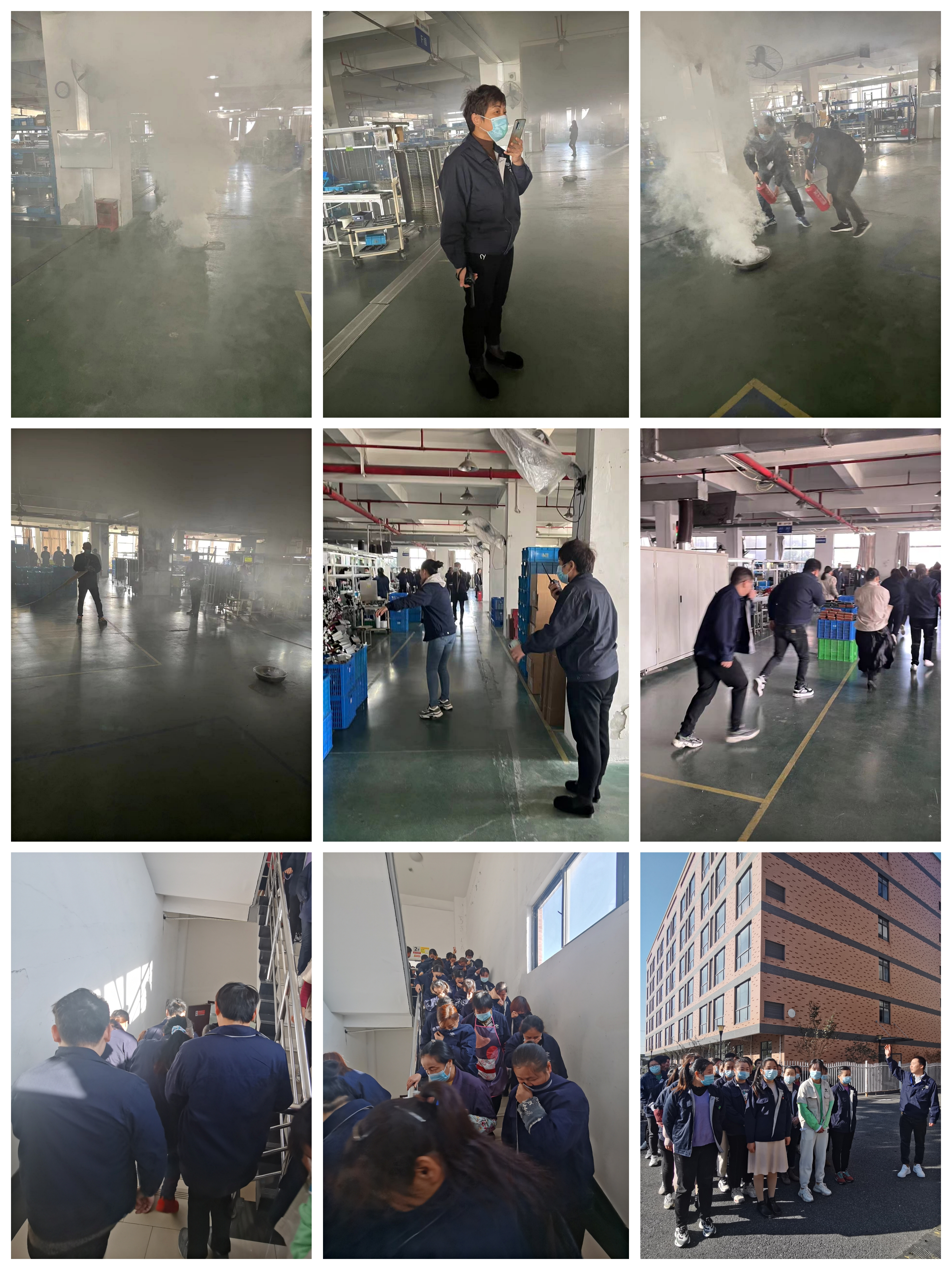 隨后,在公司車間模擬火災發生現場,全體員工開展了一場消防實戰演習。在接到現場工作人員發生火災情況的報告后,車間負責人第一時間通知公司消防工作人員、撥打119火災報警電話;義務消防員迅速行動,按照預案展開滅火行動;全體員工在疏散引導員的指引下按照規范,通力協作,撤離至安全地帶。整個演習過程緊張、迅速、標準、有序,所有參與人員認真學習,嚴肅對待。
